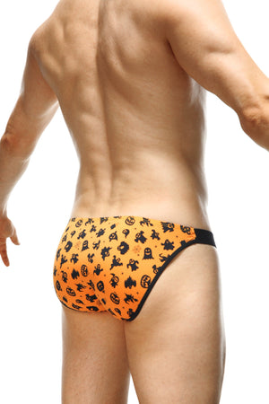 Sei frech an Halloween! Oranger Bikini mit Geister-, Hexen- und Kürbismotiven. Mit Öffnung vorne – so kannst du deiner Wut freien Lauf lassen.