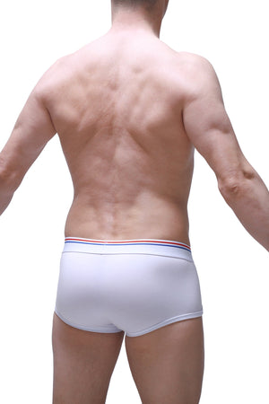 Bequeme weiße Modal-Boxershorts mit süßer Tasche und Seitennähten. Dreifarbiger PetitQ-Gürtel.