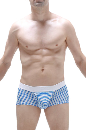 Blau-weiß gestreifte Shorts mit niedriger Taille, kurz an den Oberschenkeln, mit großer Vordertasche und nahtlos, um maximalen Komfort zu gewährleisten.