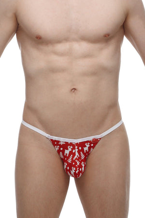 Winziger schwarzer Stringtanga mit T-Rücken und weichem, tropisch anmutendem Beutel aus Nylon.