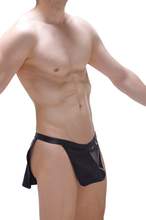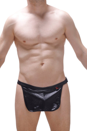 Schwarzer Lendenschurz aus Vinyl, an den Seiten gut sichtbar.