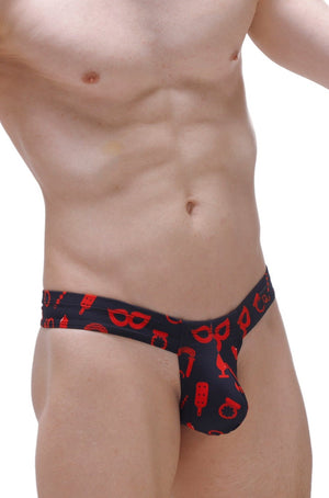 Tief sitzende Unterwäsche zwischen Slip und Tanga auf der Rückseite. Schöne Vordertasche. Sehr frecher Aufdruck, der Sie mit seinen Handschellen, Plugs und Peitschen auf Ideen bringt.