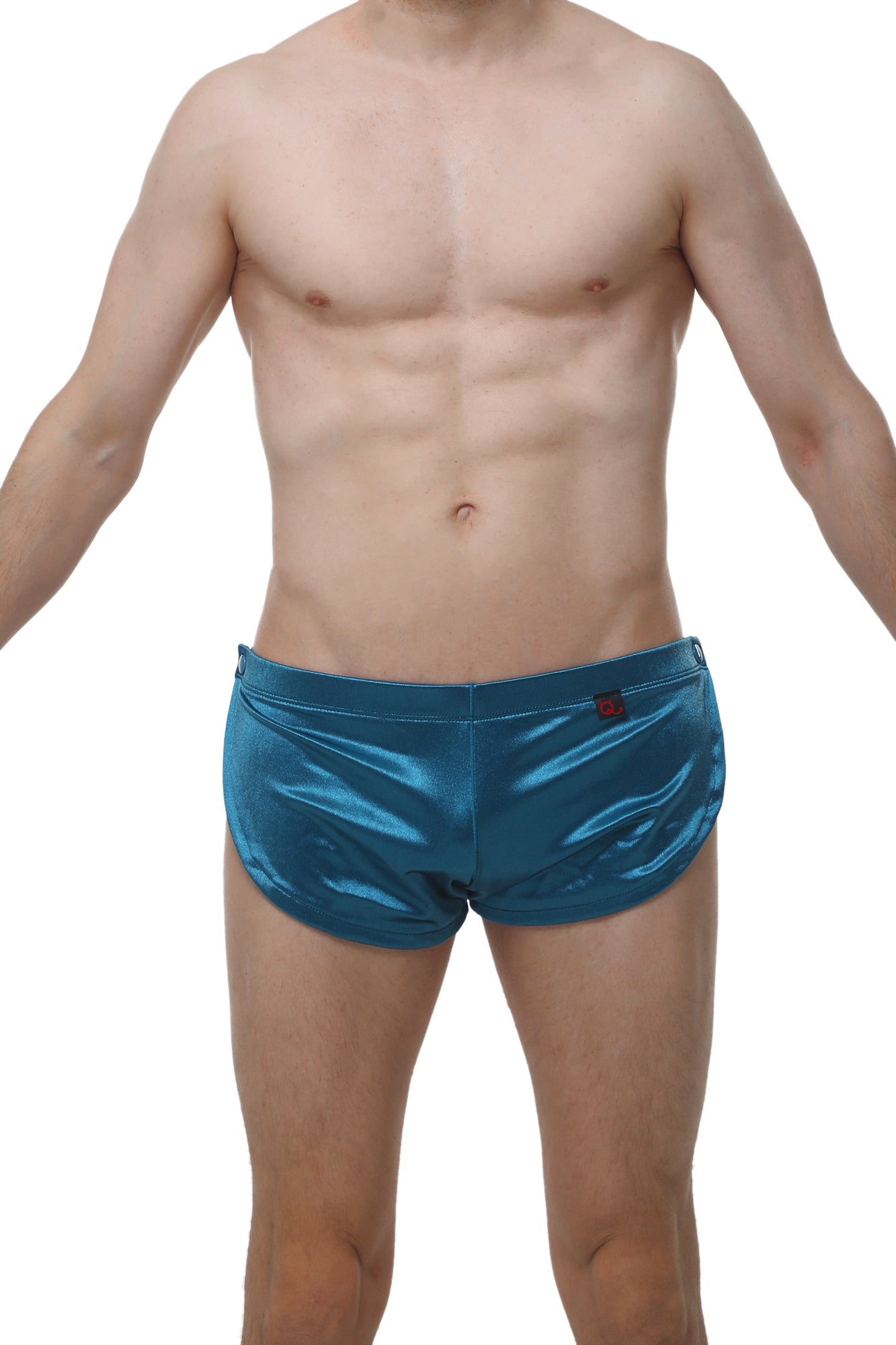 Confectionné dans notre Satin Teal Bleu premium (90% Polyester / 10% Spandex), ce short offre un fini brillant de haute intensité. Sa nuance bleu-vert profonde irradie un lustre semblable à du métal liquide, offrant une douceur incroyable contre la peau et une extensibilité à 360 degrés pour un confort total.