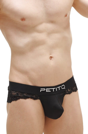 Between a bikini and a thong, this lace underwear shows off your buttocks and also features a string at the back. Nylon front pouch.