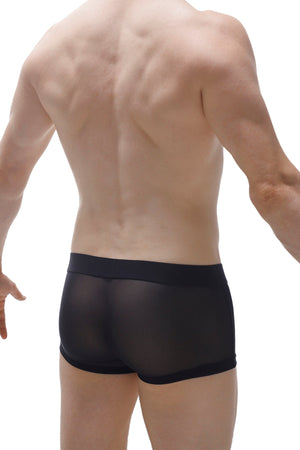 Boxer transparent noir avec découpe sur le pubis. Cockring noir en silicone détachable. Nouvelle ceinture élastique PetitQ