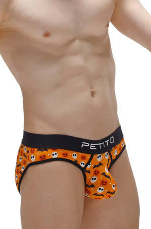 Slip confortable et doux en modal orange imprimé au thème d'Halloween avec chquvres-souris et citrouilles. Ceinture et contours noirs.