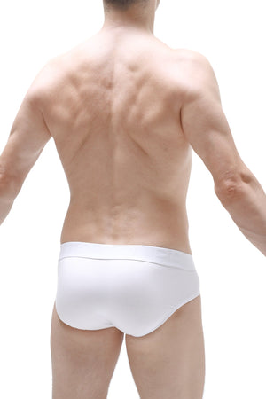 Slip tout blanc en modal doux avec une jolie poche avant ronde. Bien couvrant sur les fesses.