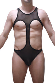 Ajoutez une touche de transparence et de sensualité avec notre nouveau bodystring ouvert sur le torse au design très affirmé en fine maille extensible noire.