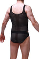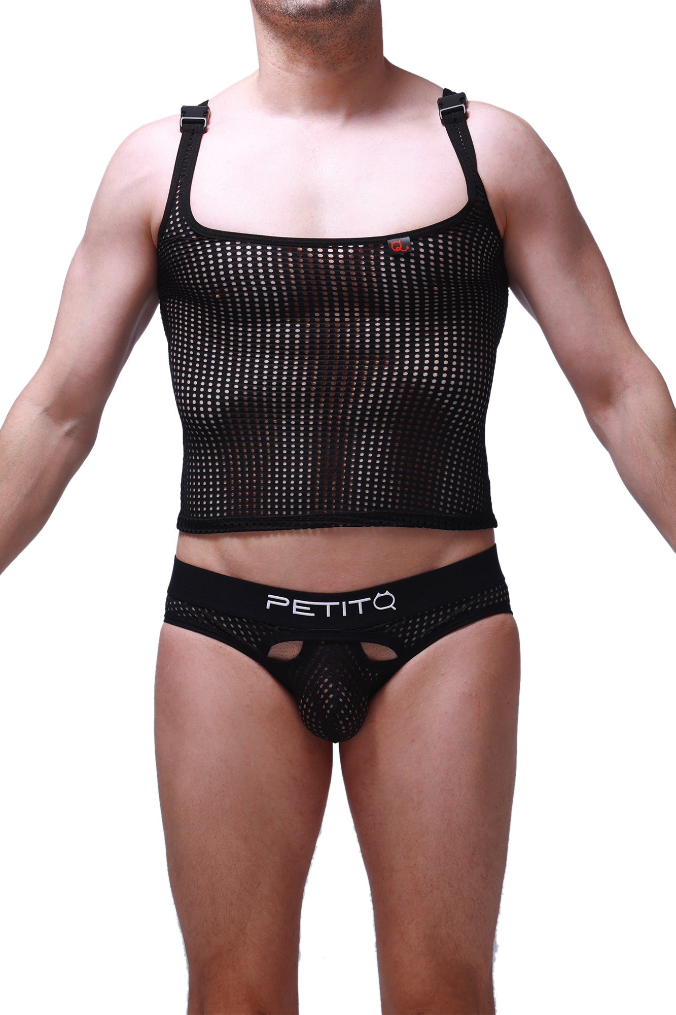 Débardeur court noir presque comme un crop top. Pinces sur le haut. Tissu noir légèrement transparent.